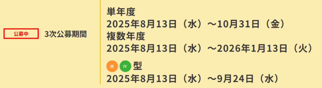 それぞれの条件や補助率について詳しくは下記パンフレットPDFの2P目か、公式サイトをご確認ください。